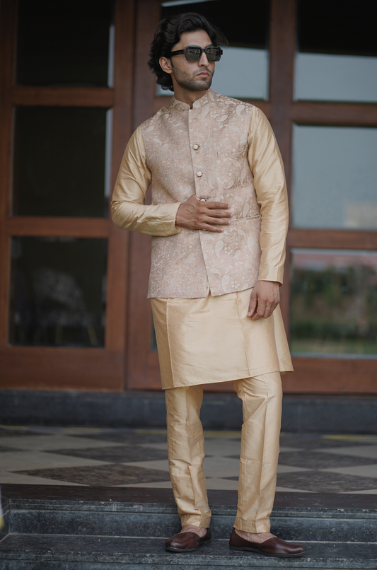 Introducing our 'Fresh Finds' category: where innovation meets tradition in men's ethnic wear. Explore our exclusive 3-piece sets, featuring avant-garde kurta designs adorned with unique patterns and crafted from unconventional fabrics. Each ensemble in this collection showcases exceptional creativity and craftsmanship, ensuring you stand out with unmatched style and originality at every gathering.